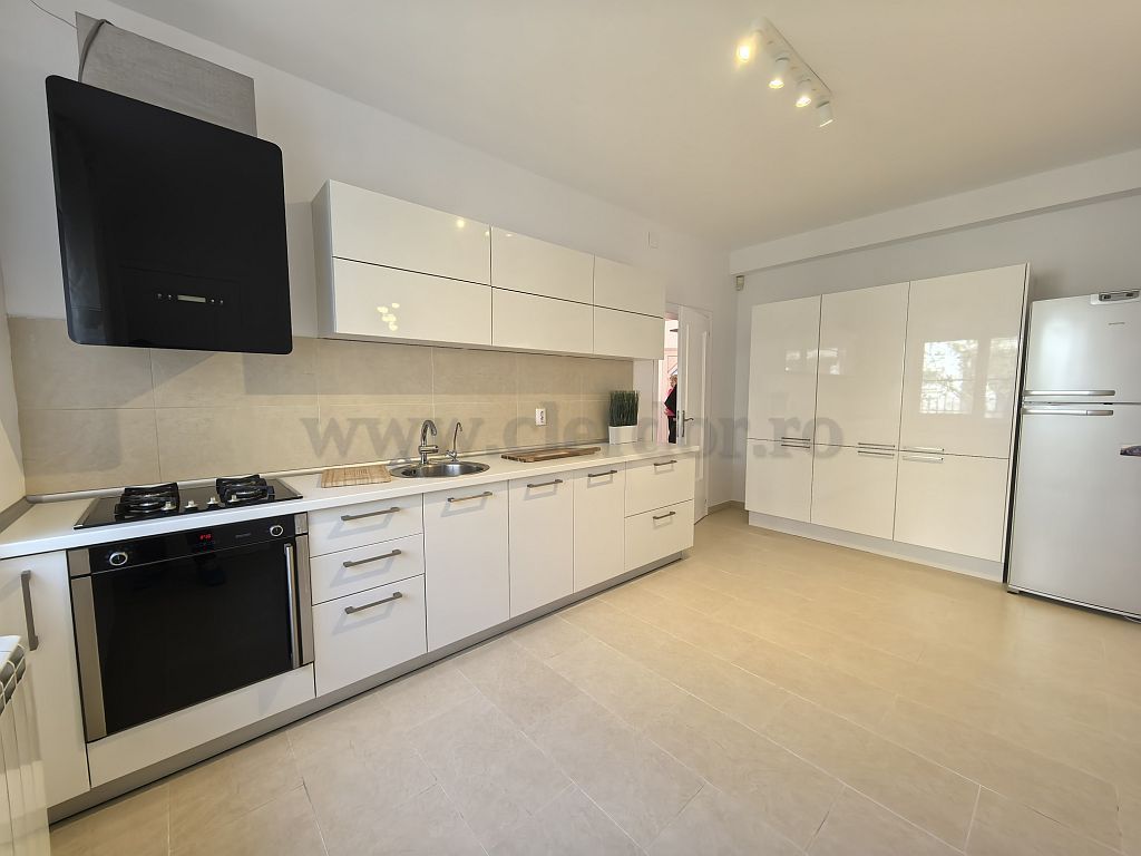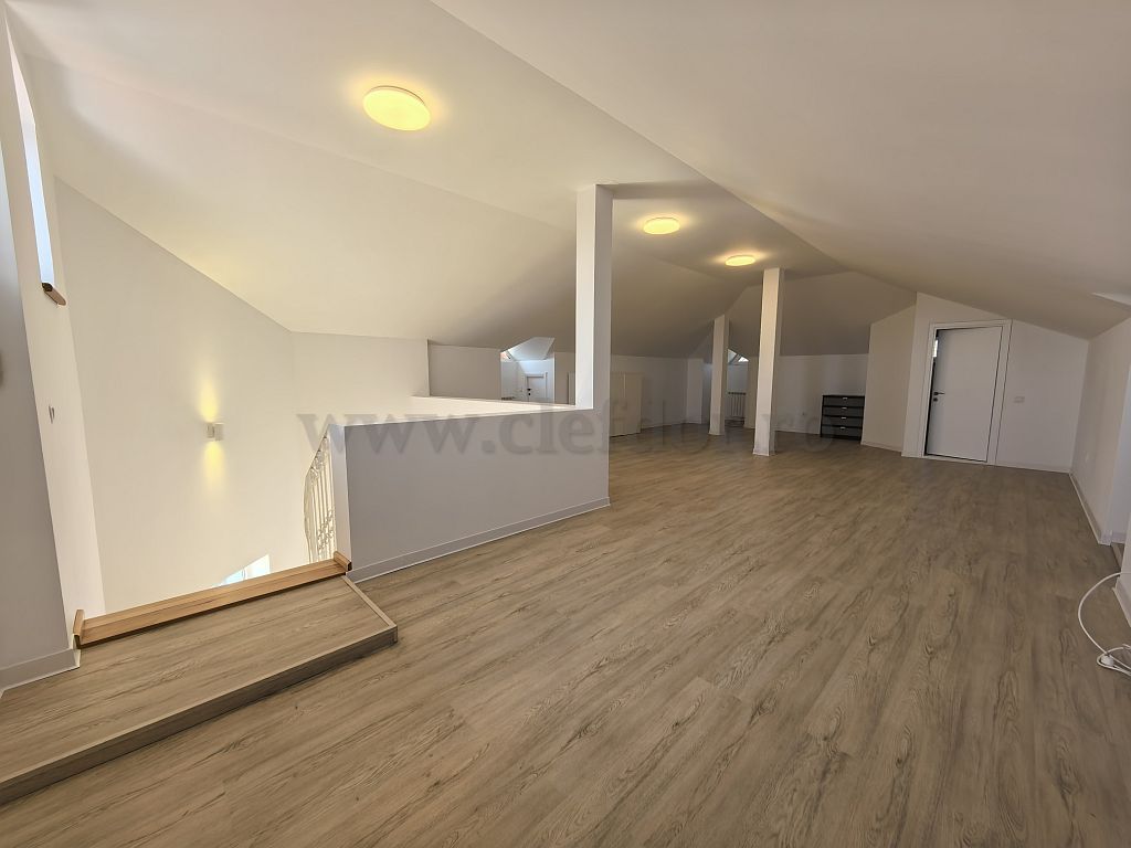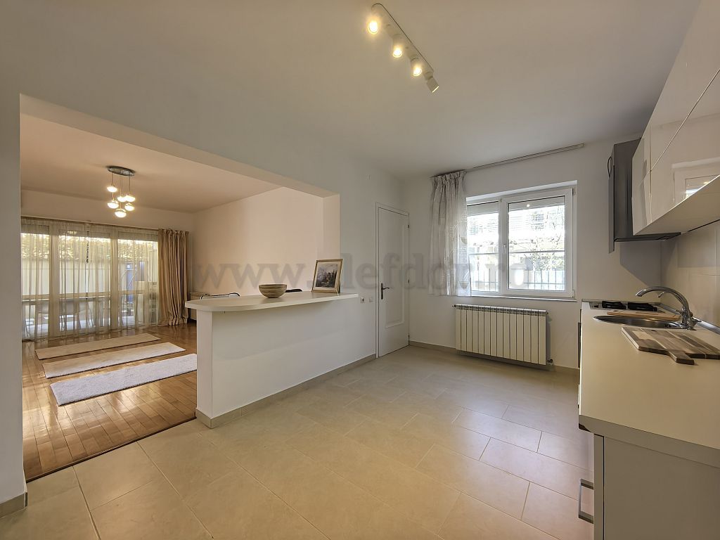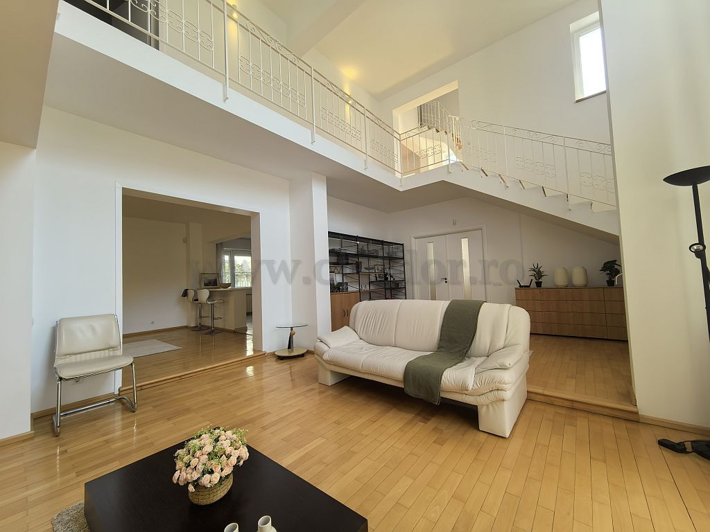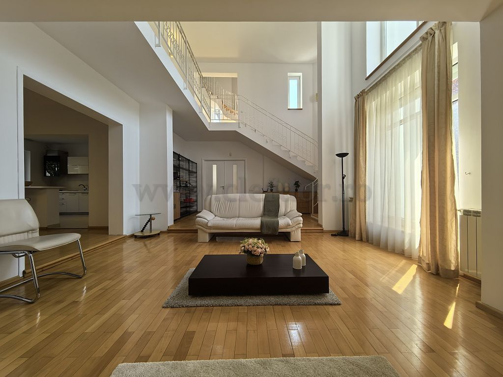 The ground floor with high ceiling is composed of the living area, dining area, fully equipped kitchen, bathroom and garage.
