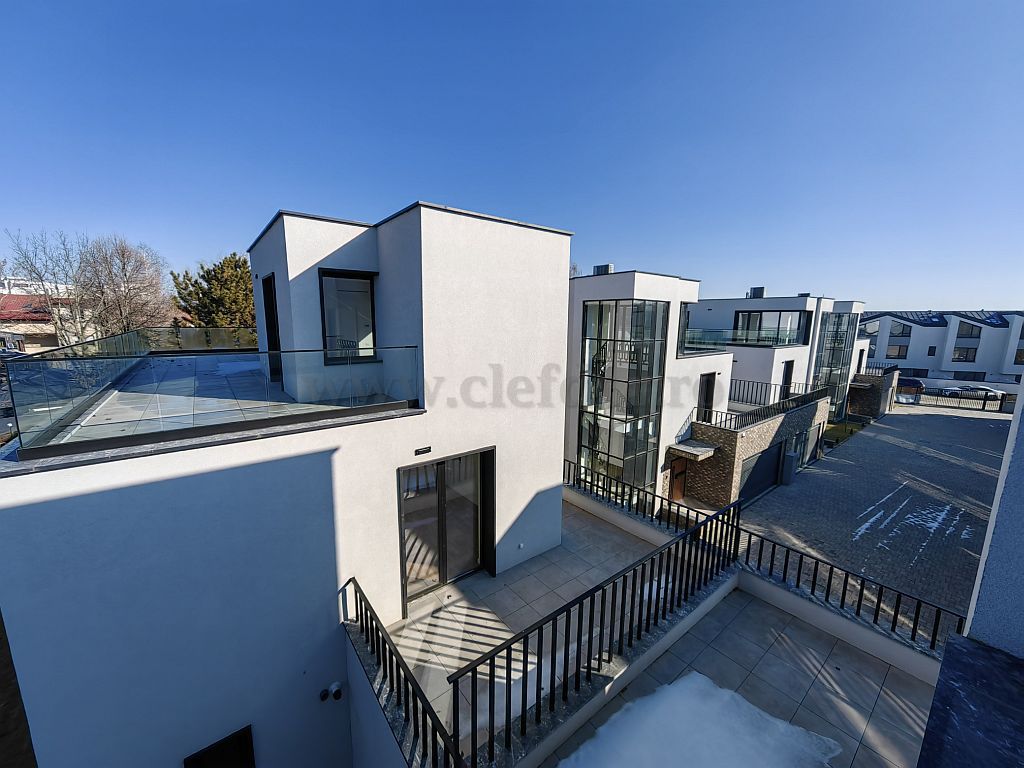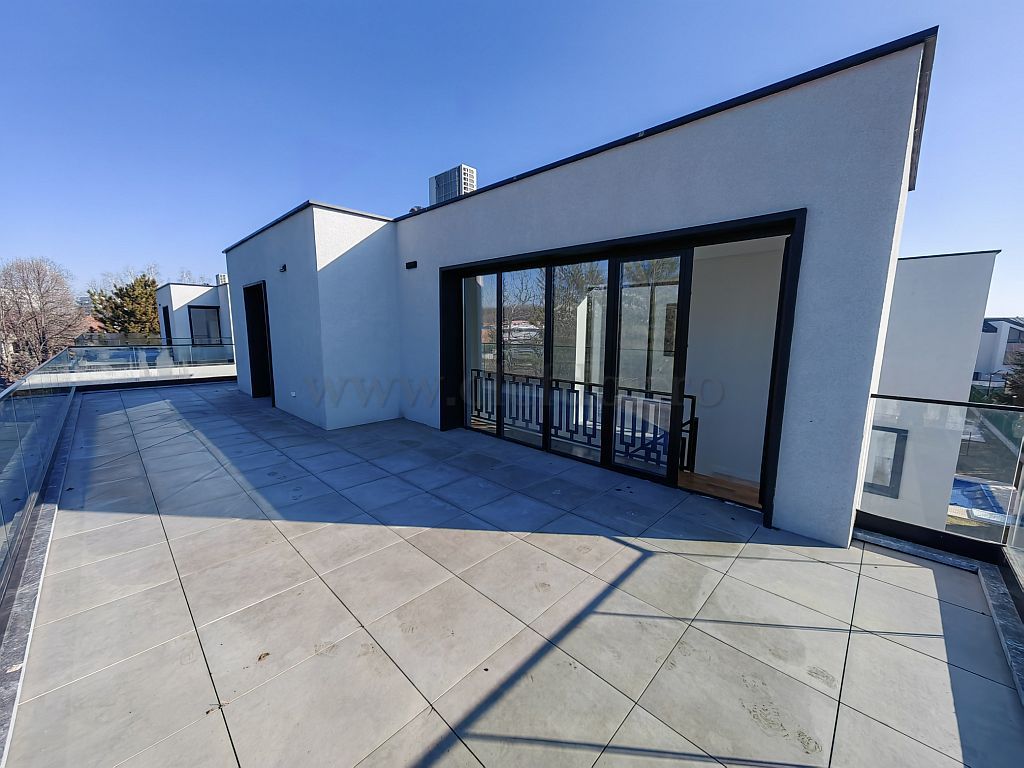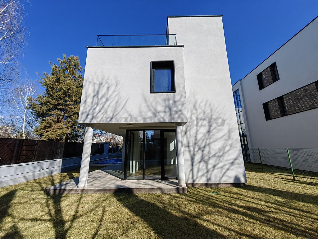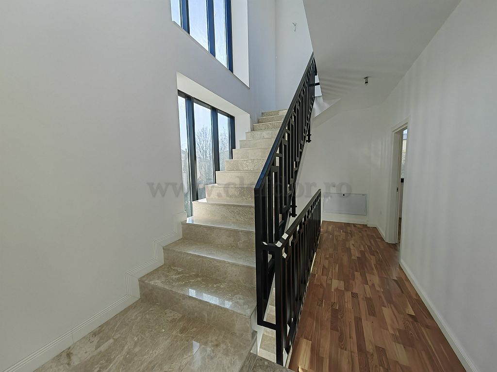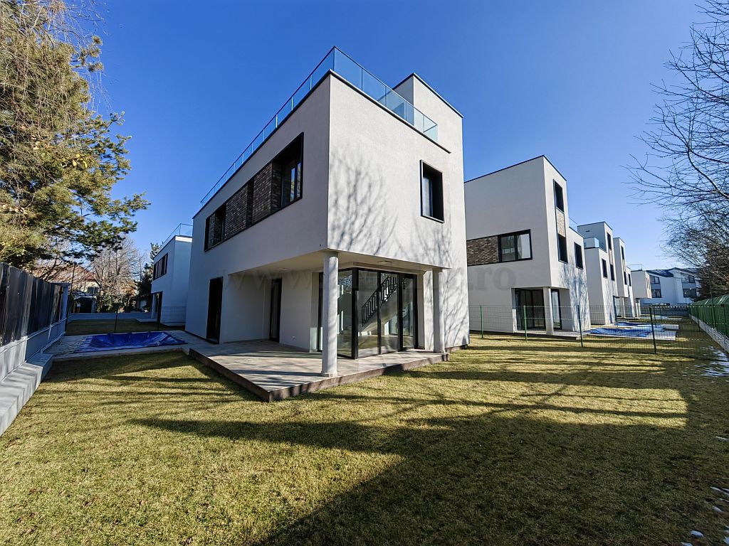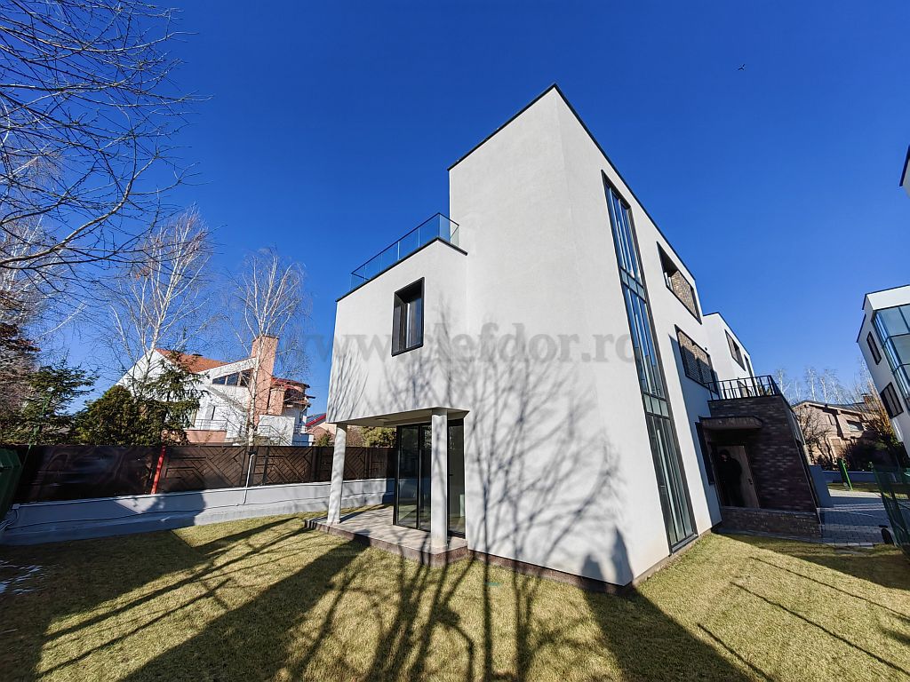 This superb project is located in Pipera area, on Mircea Eliade Street, in close proximity to the best private schools and kindergartens, a short walk to Mega Image (Liziera), a few minutes from all the facilities of the area (restaurants, cafes, gyms) and 10 minutes to Baneasa Shopping City. The complex consists of 9 individual villas, each with a double garage and swimming pool. The ground floor consists of living room with dining area, kitchen, bathroom, garage and terrace. On the 1st floor there is the master bedroom with bathroom and dressing room and other 2 secondary bedrooms with private bathrooms. The 2nd floor consists of bedroom / office / hobby, bathroom and terrace. The villa is rented partially furnished and equipped, with fully furnished and equipped kitchen, equipped bathrooms, underfloor heating, trypan windows, aluminum joinery, thermal and sound insulation.