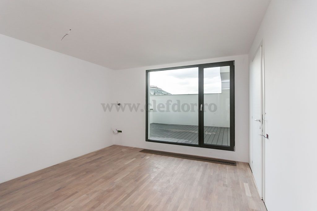 Doua dormitoare, baie si terasa spatioasa la nivelul suprerior.