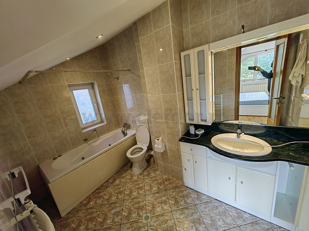 La primul etaj are dormitor matrimonial cu dressing si baie si 2 dormitoare secundare,deservite de o baie.