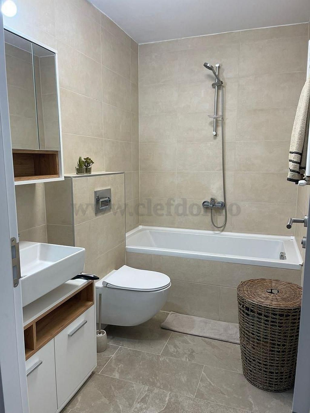 La mansarda are un dormitor, birou si baie.