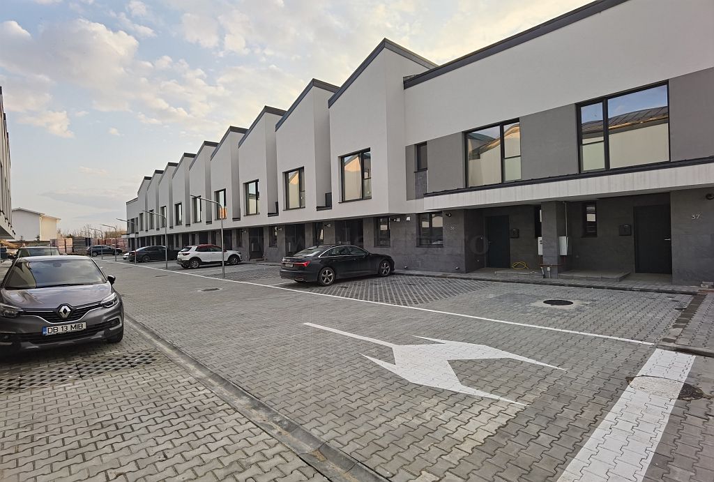 Vila este noua, se afla intr-un cartier rezidential, are paza 24h si 2 locuri de parcare